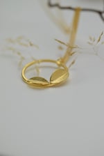 This double leaf necklace from the Fold Collection features two handcrafted leaf charms made in recycled sterling silver with an 18-carat gold vermeil finish. Each leaf has a gentle fold down the centre and unique textures that catch the light beautifully. The leaves are balanced on a delicate ring, creating a sculptural pendant with natural movement.