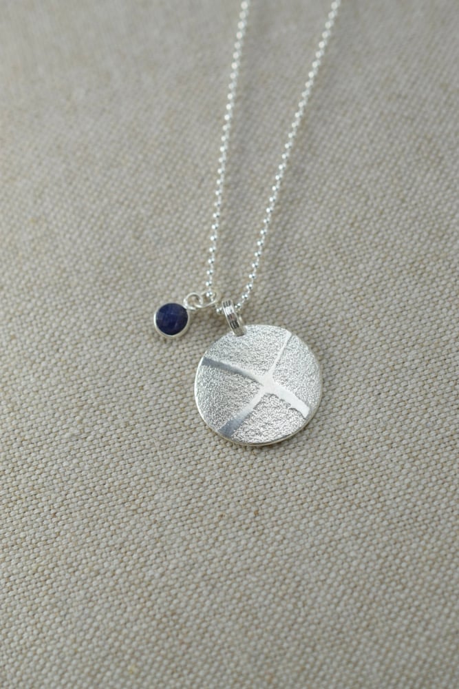 Part of the Saltire Collection, this elegant silver pendant celebrates Scotland in a subtle and understated way. Its softly textured surface echoes the shape of the Scottish Saltire, paired with a small sapphire — the perfect nod to Scotland’s national blue. The pendant measures approximately 2.5 cm tall and 2 cm wide, and hangs from an 18-inch silver ball chain.