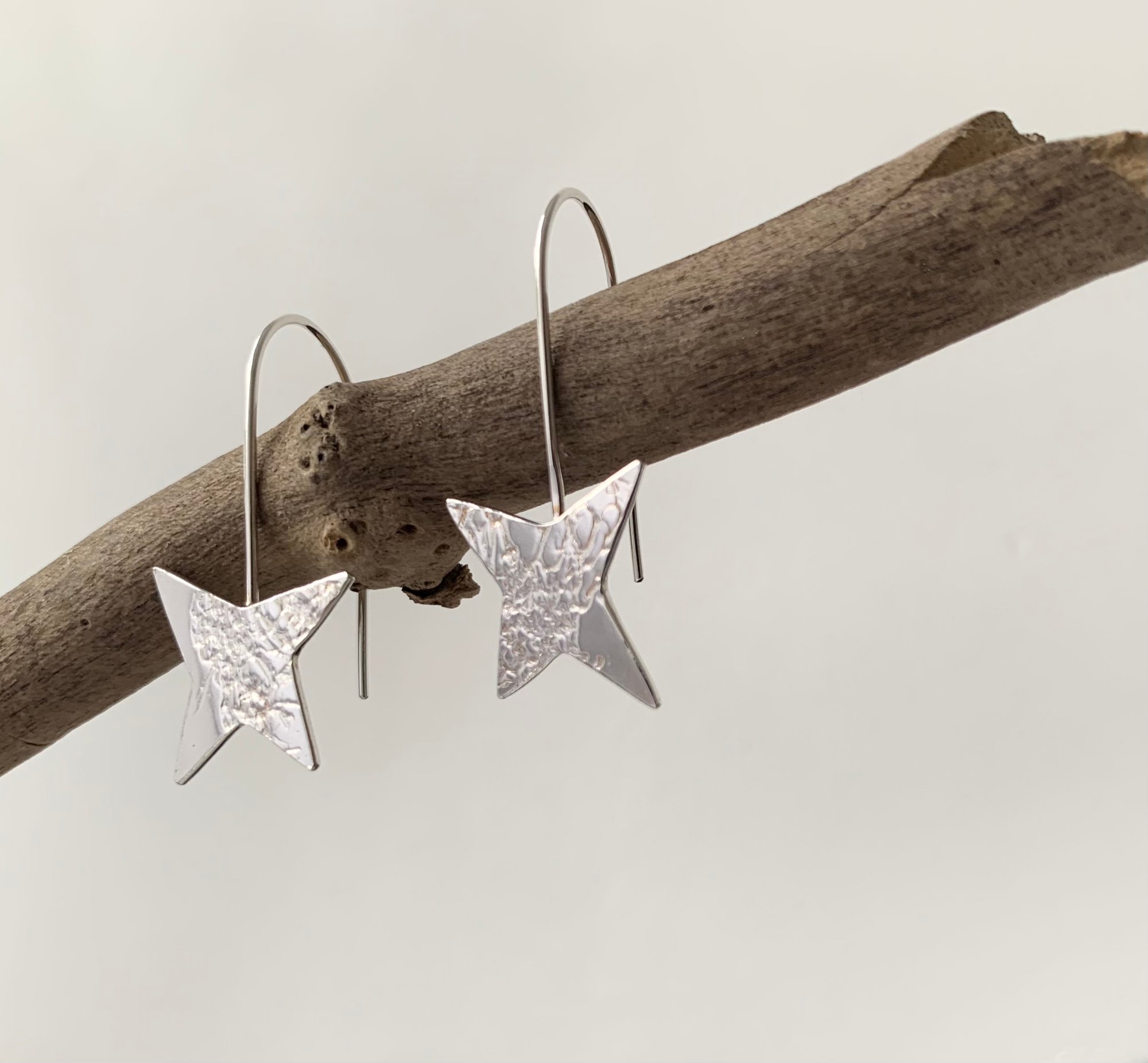 These original silver star earrings have been given an uneven texture. Each star is hand cut and slightly different to the other one, in other word: unique!