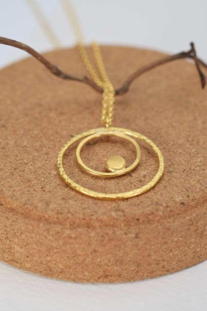 Each piece is handmade in my Edinburgh workshop using sustainable materials and traditional techniques, so every necklace is slightly unique. This gold vermeil concentric rings necklace is a thoughtful gift for anyone who loves jewellery, contemporary design and high quality artisanal craftsmanship. It arrives in a beautiful jewellery box ready for gifting.